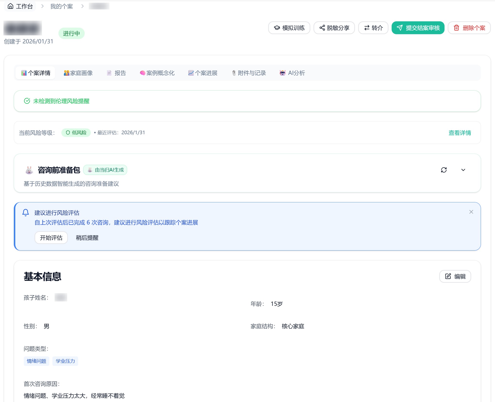 “个案看板让我能清晰地追踪每位来访者的进展。风险预警功能更是帮我们在第一时间识别了好几个高危个案,非常安心。”